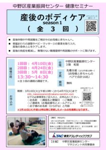 【開催日】1月17日(土)、ワーカー向けカラダケア