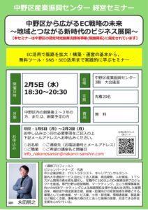 【開催日】2月5日(水)、経営セミナー 中野区から広がるEC戦略の未来 ~地域とつながる新時代のビジネス展開~