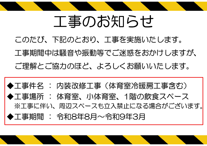 【 工事のお知らせ 】