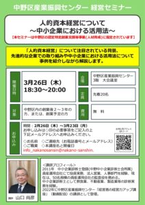 【開催日】3月26日(木)、経営セミナー 人的資本経営について~中小企業における活用法~