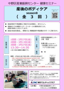 【開催日】2月14日(土)、ワーカー向けカラダケア