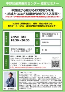 【開催日】2月5日(木)、経営セミナー 中野区から広がるEC戦略の未来 ~地域とつながる新時代のビジネス展開~